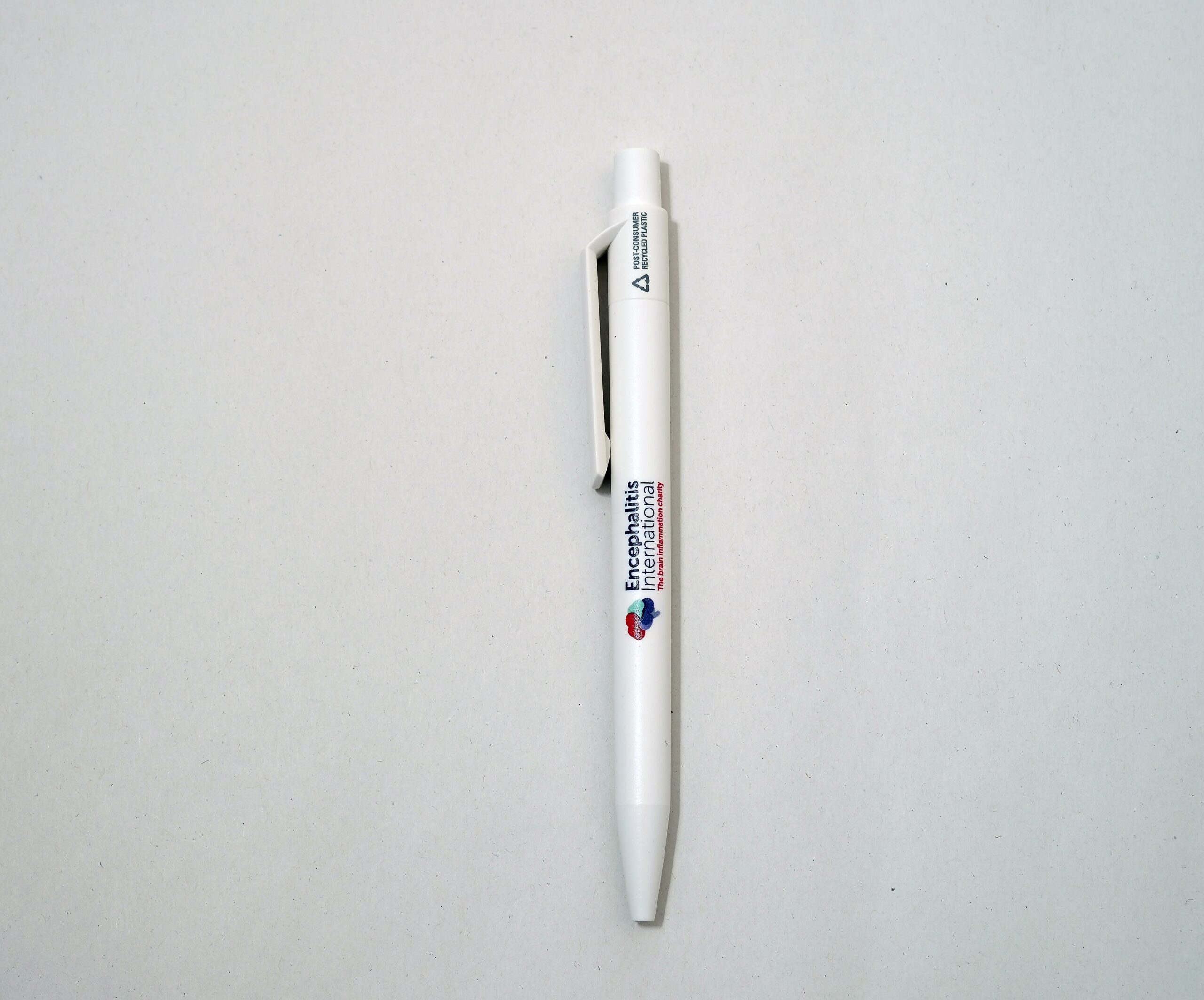 The pens are matte recycle white ball pen - white barrel and a push action ball pen made from post consumer recycled waste, with our logo